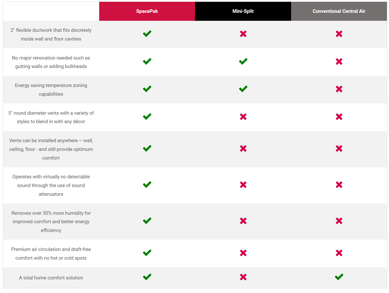 SpacePak is engineered to deliver true central heating and cooling that fits seamlessly into your home: